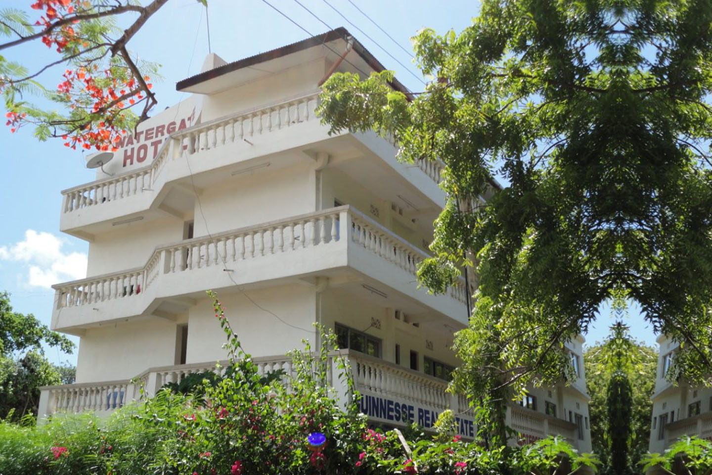 Watergate Hotel is a landmark and one of the most desirable holiday destinations Kilifi has to offer located at the center of Kilifi town next to the Kilifi post office, a two minutes walk to the district headquarters. A walking distance to the most famous Kilifi Bridge and the sandy beaches. All the 30 rooms are en-suite wall to wall tiles, wonderful balconies overlooking the town, with fans, T.V with DSTV channels and WiFi (wireless internet) connectivity at all points of the hotel .A conference Hall for 40people, two restaurants on the ground floor and another on the roof top together with a lobby.